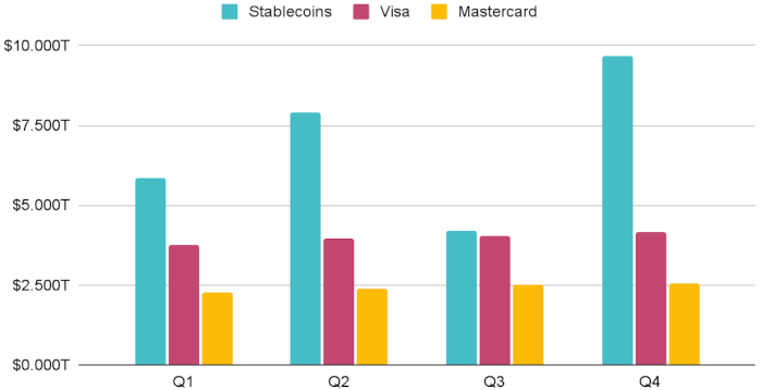Стейблкоины обогнали Visa и Mastercard по объему транзакций
