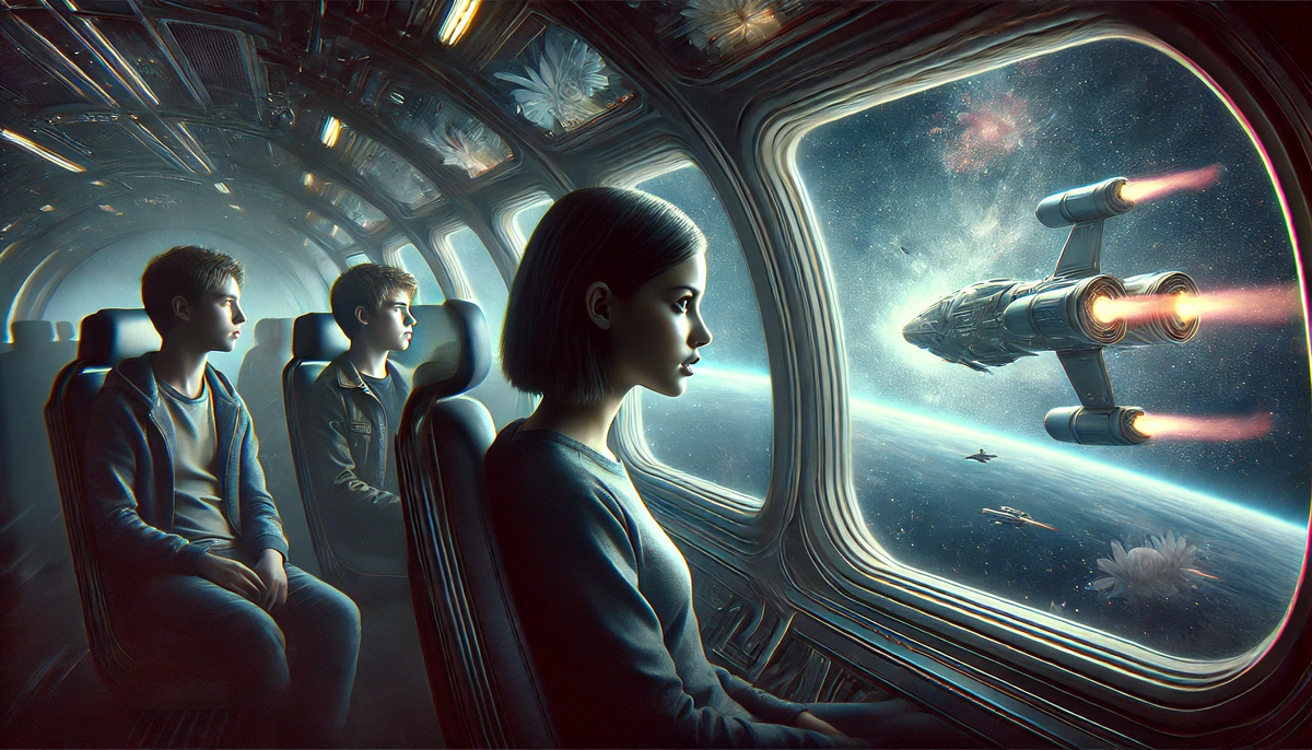 Корабль, созданный неизвестными силами, двигался сквозь пустоту космоса, оставляя позади родную Землю. Внутри было тихо, только мерцание панелей и едва слышный гул энергетических потоков нарушали эту тишину. Лили сидела у иллюминатора, её пальцы мягко касались прозрачной поверхности, за которой простиралась бесконечная чернота. — Мы действительно покинули Землю! — прошептала она. — Мы теперь... нигде. — Или везде! — поправил её Эл, который изучал панель управления. — Этот корабль реагирует на наши мысли. Я попробовал представить маршрут, и он уже изменил курс. — Но куда? — Рами, как всегда, был настороже. Ему не нравилась идея доверяться чуждой технологии, особенно той, что не раскрыла своих создателей. Перед ними вспыхнуло яркое сияние — горизонт событий нового мира. Судя по навигационным данным, впереди была станция или, возможно, нечто большее. Но их ждало испытание. Они приблизились к огромной структуре, парящей в космосе. Она выглядела как гигантский остров, окружённый голубым све