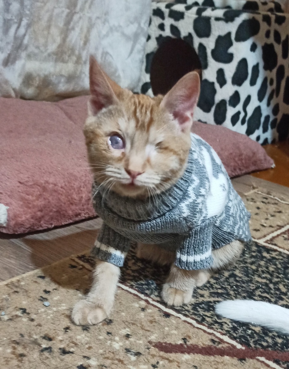 Гаврюшенька — настоящий маленький герой. 🤗 Ему пришлось пройти через непростое испытание: из-за болезни ему удалили левый глазик. Два курса лечения, к сожалению, не смогли спасти его, но Гаврюша не сдался! Сейчас он проходит восстановительный период и продолжает бороться за здоровье своего правого глазика. 💪👁️ Несмотря на все процедуры — закапывания, укольчики и визиты к врачу — он остается таким же жизнерадостным и любознательным малышом.