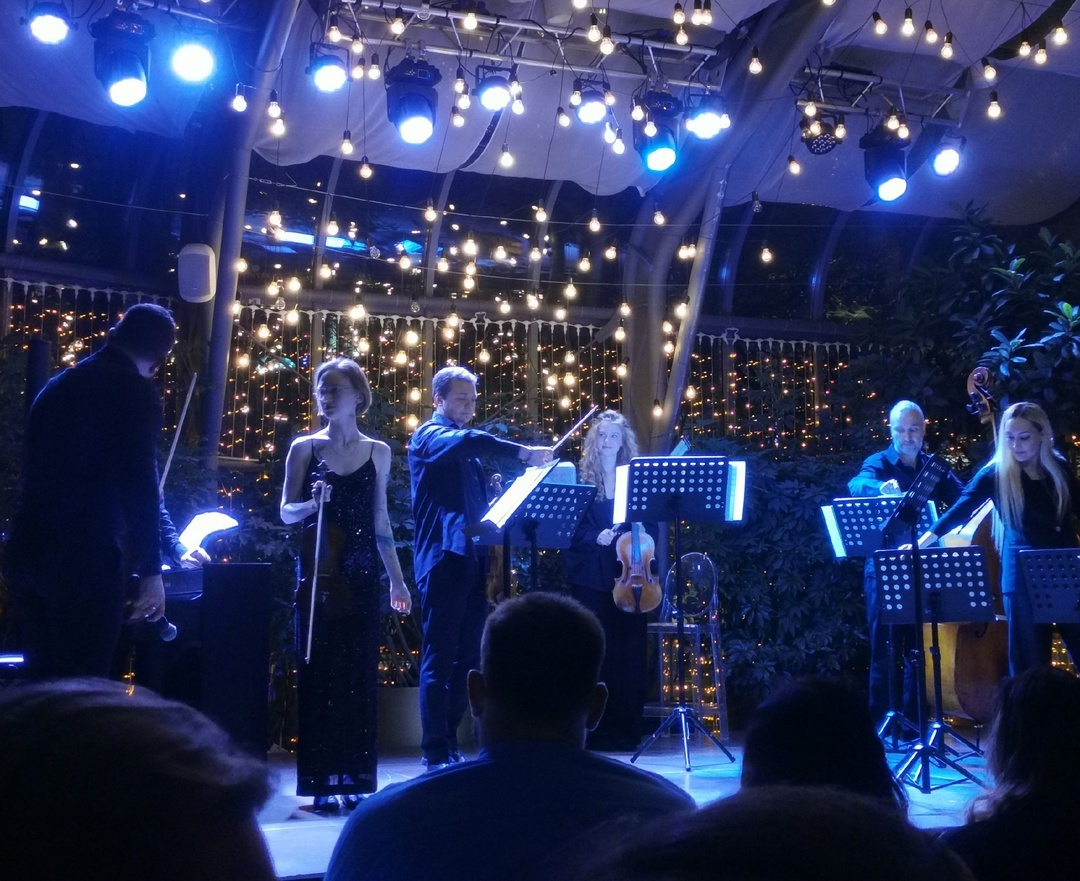В анонсе о концерте "Времена года. Вивальди и Рихтер" оркестра HighTime Orchestra в Оранжерее на ВДНХ на сайте организатора Redevents.ru пишется, что это будет переосмысление «Времён» в духе современности авторства известного современного композитора Макса Рихтера. Мой музыкальный слух далек от идеального, но понять, что музыканты исполняют именно «Времена года» Вивальди, он мне позволяет, а вот нюансы, внесенные Максом Рихтером, мне было сложно выделить. Переложений этих известных 4 концертов для скрипки с оркестром из двенадцати, входящих в опус Вивальди «Спор гармонии с изобретением», создание которых исследователи относят к 1720году, в 20 веке было немало. Были варианты с использованием только фортепиано, скрипки и фортепиано, были исполнения как в варианте аутентичных ансамблей, так и обработок для экзотических инструментов (про это Википедия рассказывает). А сколько раз сама слышала в подземных переходах: фонограмма из динамика и солист на скрипке. Но в оранжерее ВДНХ все было п