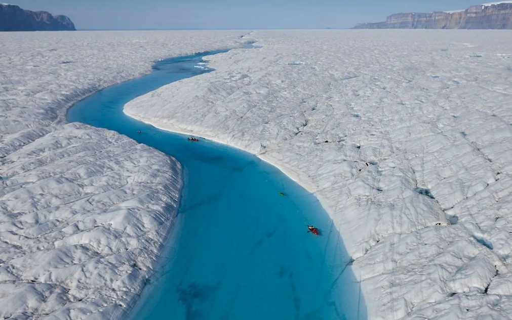 Любителям ленивого дрейфа по течению это место точно не понравится. Тут надо серьёзно напрягаться и быть внимательным. А всё потому что эта река находится в Гренландии. Течёт она не круглый год. Всю зиму её сковывает лёд. Но под летним солнышком, верхние слои ледяного щита "зелёного" острова начинают таять и маленькие ручейки сливаются в один большой поток. Именно этот поток называют Голубая река. Течёт река на Северо-Западе Гренландии, по леднику Петермана. Зрелище это привлекает туристов со всего мира, а самые отчаянные рискуют сплавиться на каяках. Думаю не надо объяснять, что эти льды таят в себе опасность. К сожалению, Голубая река просуществует недолго, так как ледник начал быстро таять. Возможно, ещё пару десятилетий река будет радовать своими видами, но если темпы таяния не снизятся, то туристам придётся искать себе другую речку. Интересно, а куда они ходят в туалет???