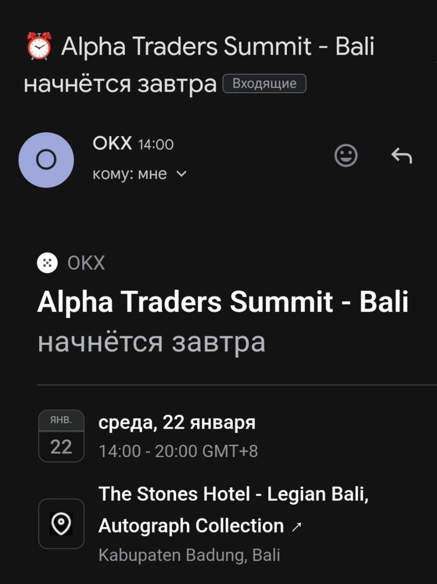 Биржа ОКХ пригласила топ трейдера TradingView Vilarso на закрытый саммит альфа-трейдеров, который пройдет 22 января на Бали.
