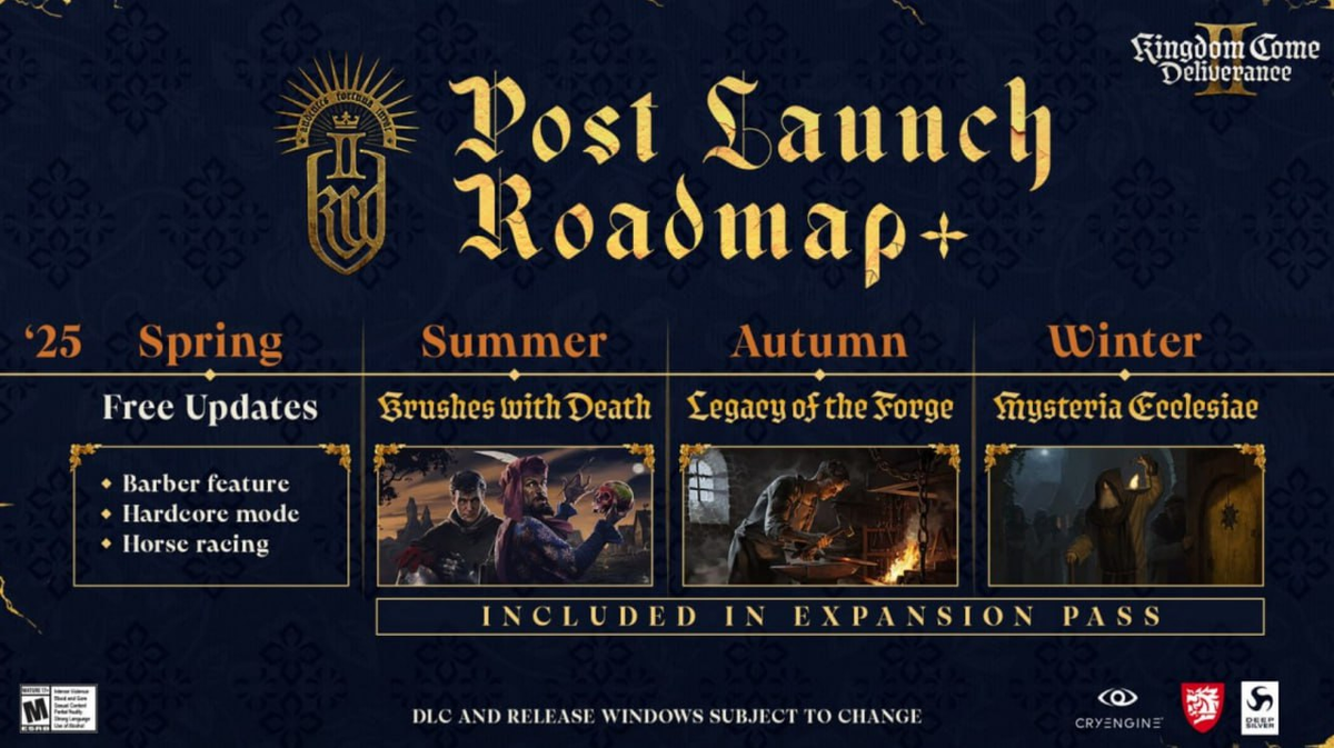 Разработчики из Warhorse Studios раскрыли дорожную карту Kingdom Come: Deliverance 2. Игра, релиз которой запланирован на 4 февраля 2025 года, уже обещает стать одной из самых масштабных RPG. Грядущий контент будет включать бесплатные обновления и три крупных сюжетных дополнения, выходящих в течение года. Весна: старт бесплатного контента Сразу после выхода игры разработчики порадуют игроков крупным бесплатным обновлением. В него войдут: Лето: первое сюжетное DLC Первое дополнение будет посвящено художнику с загадочным прошлым. Игроков ждёт история, связанная с искусством и интригами средневековья. Осень: кузница и её развитие Второе DLC расширит крафтовую систему, сосредоточенную на кузнечном деле. Игроки смогут развивать собственную кузницу, изготавливать уникальное оружие и броню. Зима: борьба с эпидемией Третье дополнение расскажет историю смертельной болезни, которая угрожает жителям. Игрокам предстоит решить, как справиться с этой трагедией, и столкнуться с моральными дилеммами.