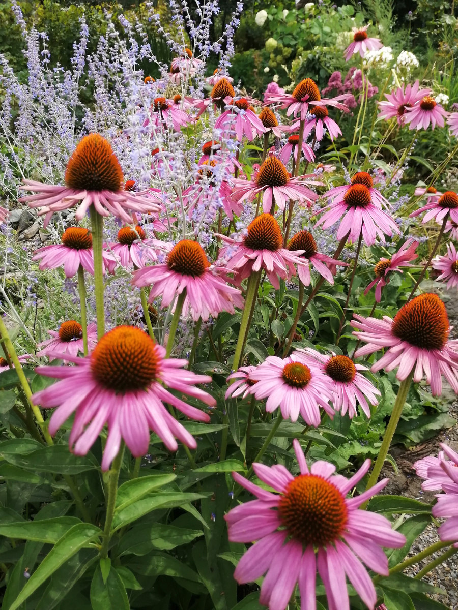 Наконец я добралась до персоналий цветника в условно природном стиле. Почему столько оговорок? Так для истинно природного он слишком искусственный, место для вариаций там, безусловно оставлено, но учет и контроль никто не отменял. Ну и плюс я не следую рекомендациям по созданию цветников Новой волны - у меня другие условия и немного другие цели, на моих площадях не создать бесконечного моря злаков и цветных озер тех же эхинацей и посконников. Так что за неимением гербовой... Что мне пришло в голову и что я, собственно, который год пытаюсь воплотить в жизнь. Во-первых, я взяла несколько видов растений, которые решила сделать своего рода опорами. Брала те, которые в наших условиях относительно устойчивы и которые достаточно просто достать. Это обычная видовая эхинацея пурпурная, дербенник иволистный и злаки. В первую очередь вейники остроцветковые 'Overdam' и 'Karl Foerster' - их было проще всего купить. Хотя это сейчас, да и то скорее всего за ними придется пилить в соседний город N. А
