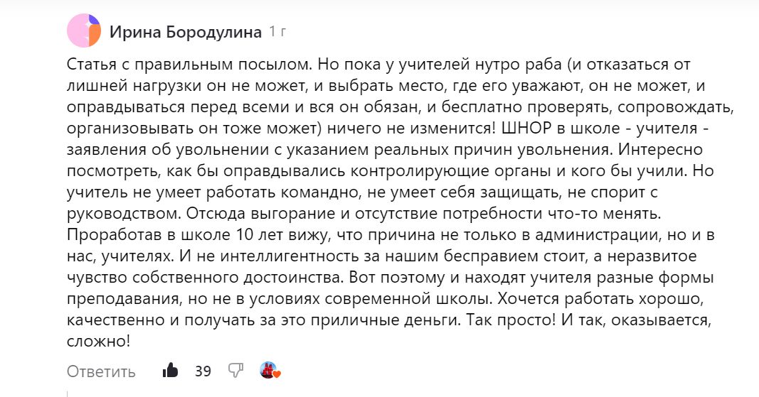 И вот другое мнение. Учитель отработал в школе 10 лет и видит эту картину вот так.