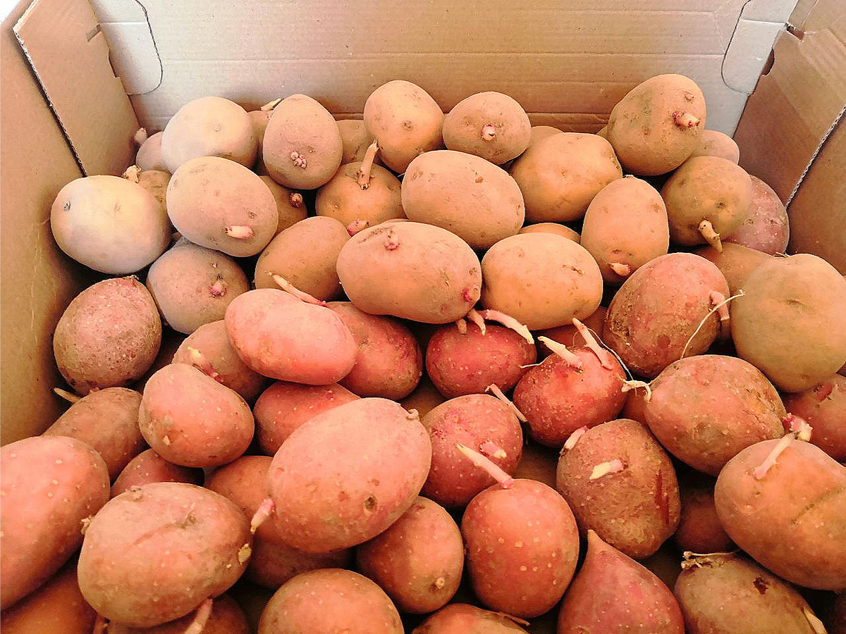 Картофель для проращивания, достают из подвала или погреба примерно за 2-3 недели до посадки.