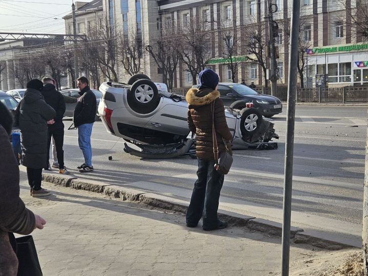 Пробка парализовала Московский проспект из-за аварии с перевернувшимся авто в Воронеже