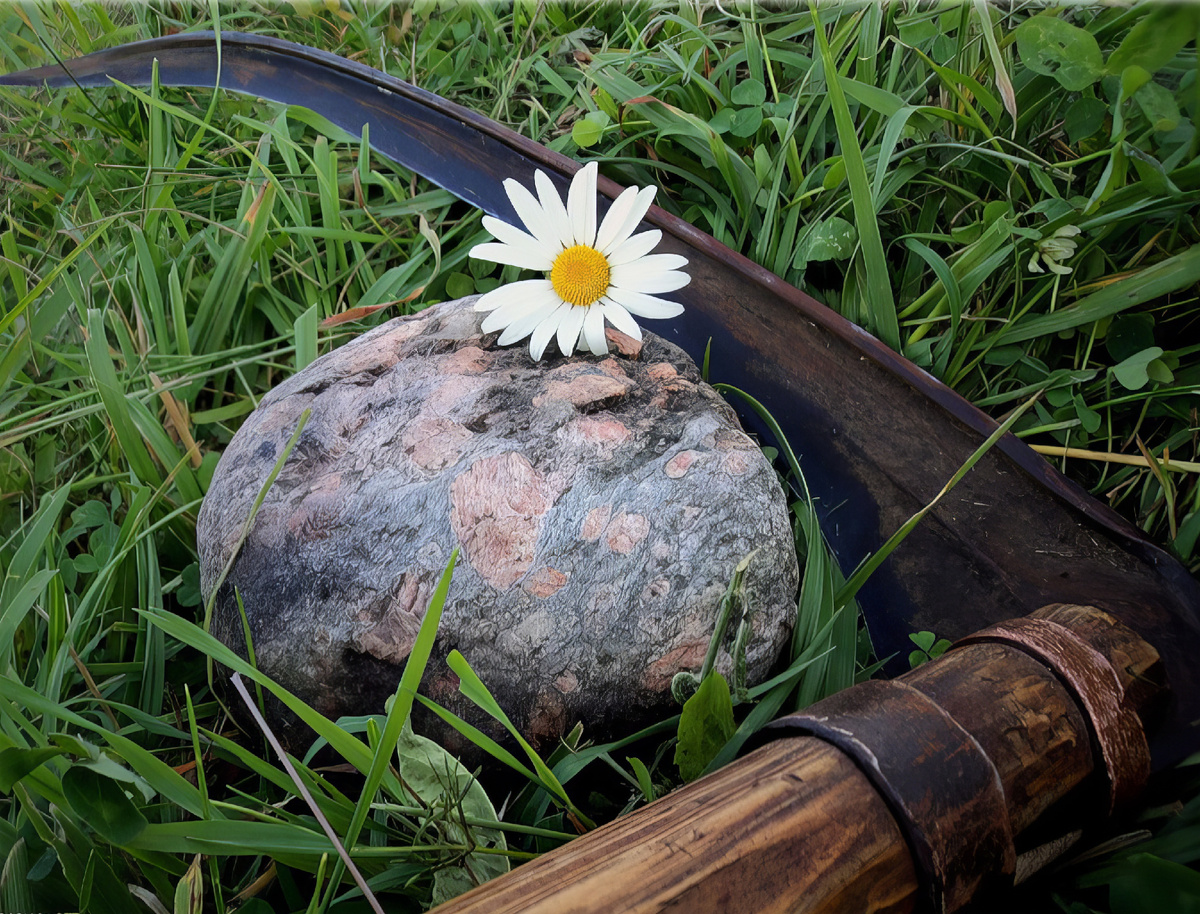 Он стоял на краю поля, крепко сжимая в руках старую, надёжную косу. Утренний свет заливал окрестности мягким золотистым сиянием, обещая жаркий день впереди. Трава, ещё влажная от росы, переливалась всеми оттенками зелёного, словно живой ковёр, простиравшийся до горизонта. Сделав первый уверенный шаг, он начал махать косой, и трава послушно ложилась ровными рядами. Каждое движение было плавным, почти танцевальным, и казалось, что он сливается с окружающим миром, становясь его частью. Однако вскоре что-то изменилось. Его коса встретила сопротивление. Сначала слабое, едва ощутимое, но с каждым ударом оно усиливалось. Казалось, что невидимая стена вставала на его пути, не давая пройти дальше. Он продолжал работать, стараясь пробиться сквозь это препятствие, но безрезультатно. Коса звенела, но не могла продвинуться вперёд. Наконец, он увидел причину своего затруднения. Прямо перед ним возвышался огромный серый камень, величественно лежащий среди зелёного моря травы. Камень словно специально