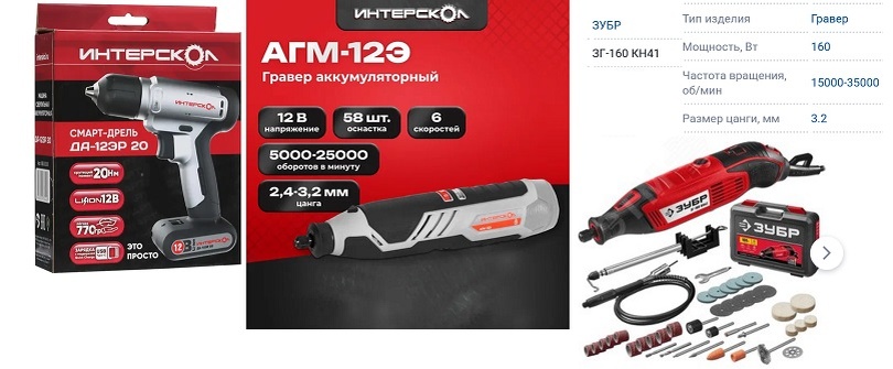 К шуруповерту или граверу нужны насадки. Обязательно к приобретению щетки-крацовки для шлифовки изделий и набор различных фрез (шарошек).