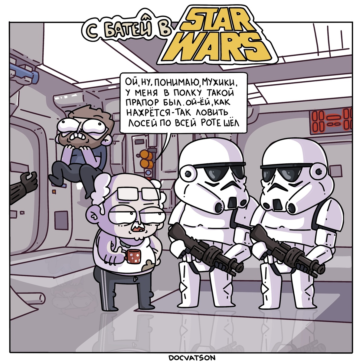 Даже у тех художников, что привыкли рисовать никак не связанные между собой небольшие комиксы на разные темы, время от времени появляются идеи для какой-нибудь серии с общей идеей. Это может быть как небольшое ответвление от главного проекта, так и что-то отдельное. Чаще всего подобные серии строятся вокруг какого-нибудь харизматичного персонажа. К примеру, герой сегодняшней статьи решил нарисовать серию комиксов про типичного батю, который любит несмешно пошутить, потравить свои байки или на что-нибудь пожаловаться. Вот только если батя в этих комиксах типичный, то антураж отнюдь для него совсем не характерный, потому что это вовсе не диван в гостиной или рыбалка в лесу, а миры известных фильмов и видеоигр.