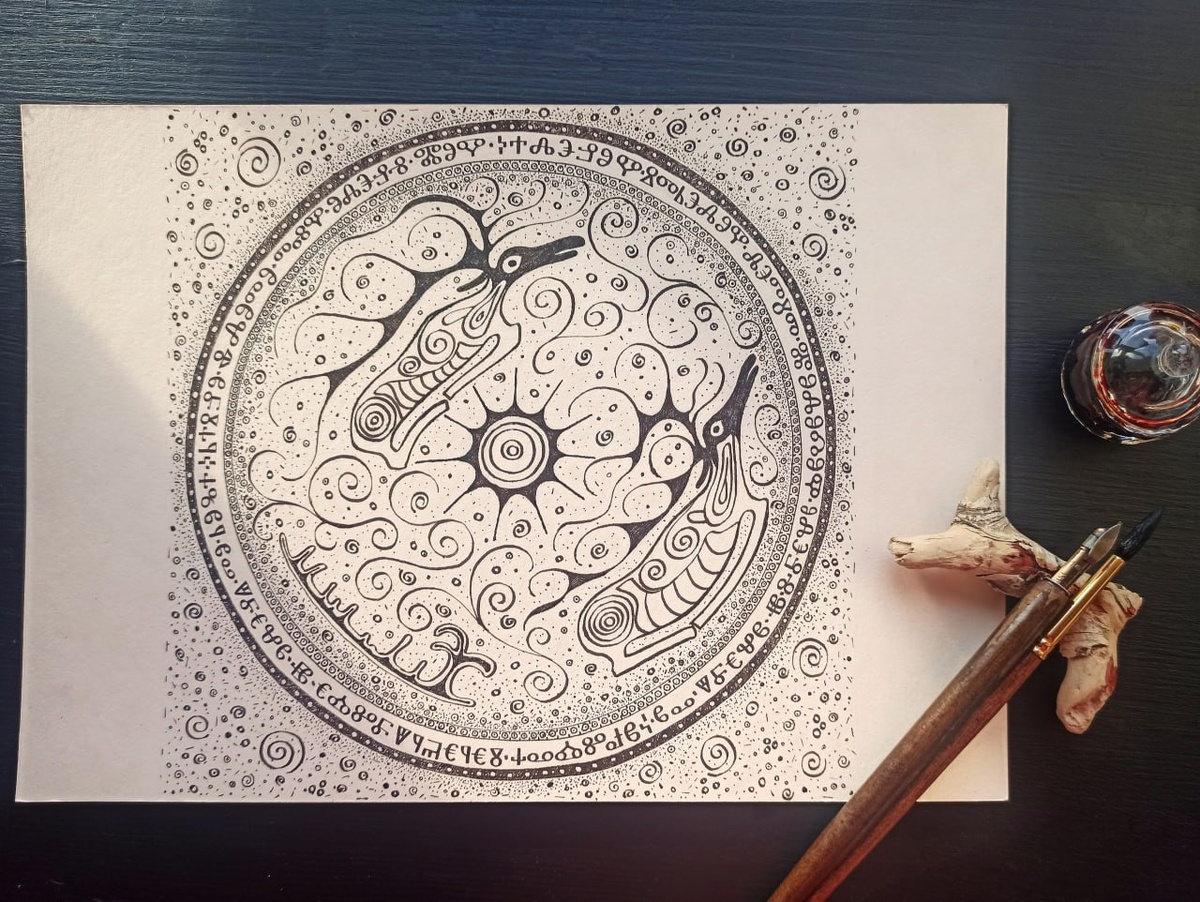 Каждый год 23 января в мире отмечается День почерка или День ручного письма. Праздник учреждён с целью напомнить об уникальности ручного письма, о необходимости практиковаться в нём, о неповторимости почерка каждого человека. Оксана Труфан занимается каллиграфией 7 лет. В последнее время это хобби настойчиво переходит в профессию. Она – дизайнер, создающий логотипы в основном буквенные или каллиграфические. А с недавних пор – преподаватель каллиграфии для детей. В прошлом году на своей странице она поделилась произведением под названием «Олень-солнце». Вся работа заключена в круг, сам по себе символизирующий солнце. Внутри и снаружи круга множество солярных символов, в том числе и олени. Композиционно и по сюжету это ещё и отсылка к шаманским бубнам. – Любовь к наскальным рисункам появились благодаря Томской писанице много лет назад, еще до увлечения каллиграфией. Сколько бы не изучала разные памятники наскальной живописи со всего мира, самыми красивыми и самыми любимыми остаются всегд