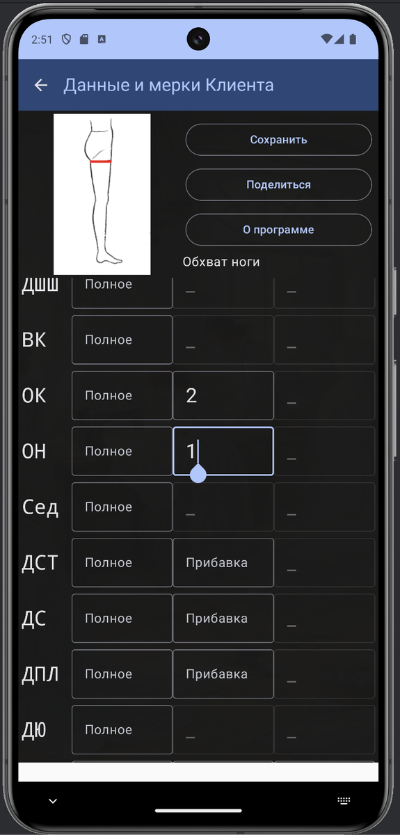 (Продолжение. Начало https://dzen.ru/b/Z4dvj0HDJDxQKDQ6) Одна запись (строка) в таблице базы может содержать всю информацию о клиенте (ФИО, телефон, дата, мерки, прибавки, примечание и т. д.). В окне базы мобильного приложения выводится только часть информации из этой таблицы (ФИО, имя файла, дата и уникальный номер в базе). Существует множество вариантов использования приложения. Например, если вам часто заказывают узкие брюки, вы можете создать шаблон с именем файла "Узкие брюки", в котором будут указаны только нужные прибавки. Остальные поля останутся незаполненными. Это позволит в будущем вводить только мерки, не вспоминая о прибавках. Обсуждение развития приложения в телеграм https://t.me/sewmob
