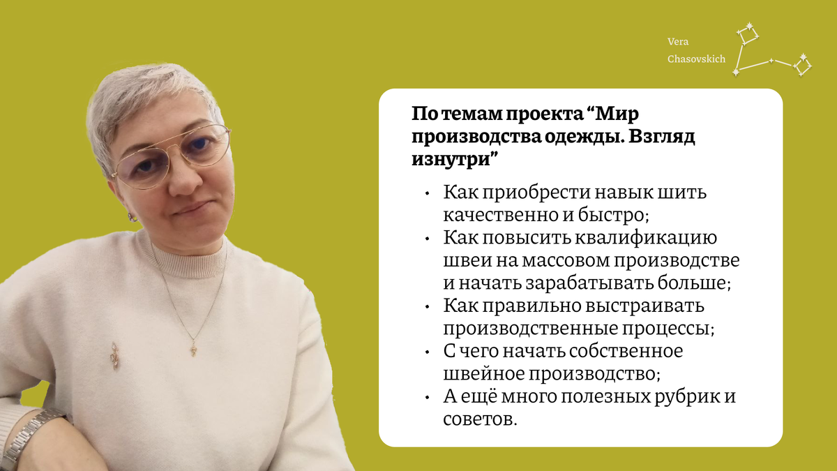Здравствуйте, уважаемые участники:) Рада приветствовать вас в этом канале, буду отправлять сюда полезную информацию Здесь будет больше упражнений, техник, полезных советов по темам проекта "Мир производства одежды. Взгляд изнутри" Подписывайтесь на канал Здесь вы найдете ответы на огромное количество вопросов только здесь, эксклюзивно. Присоединяйтесь к моему телеграм каналу! https://t.me/Vera_clothingmanufakture