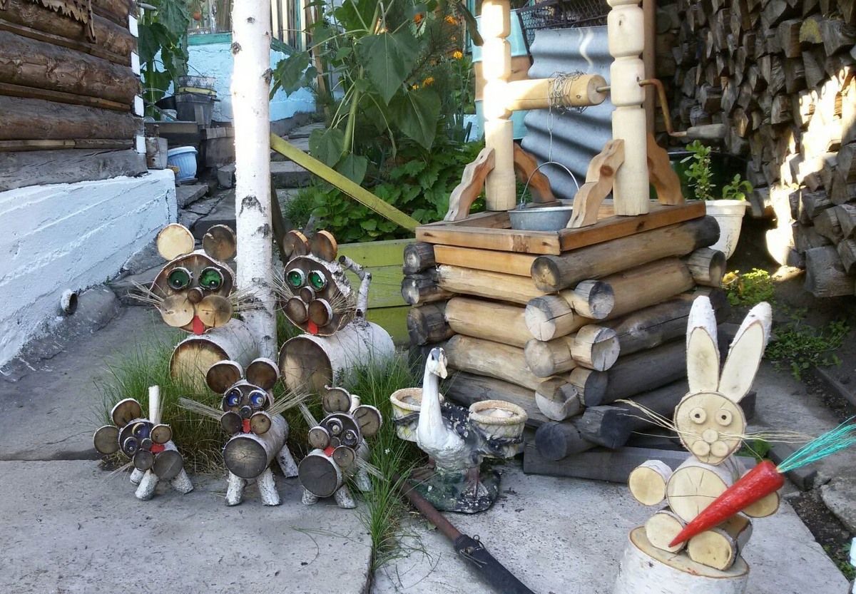 Но настоящая релаксация – на участке, в зоне отдыха: удобные качели, симпатичная, почти игрушечная, беседка для внуков (летом она увита сочно-зелёным лимонником!), бутафорский таганок, маленький бассейн, где бьёт настоящий живой фонтан, плавают кувшинки, лебедь и уточка… И пусть они не настоящие, всё равно здесь очень красиво! Возле того символического озера горкой речные камешки, на них замерли лягушата: вот-вот попрыгают в воду один за другим! Чуть поодаль – подарок детей – два милых гнома. Из обрезков ствола берёзы и эмалированных чашек, отслуживших свой век, но преображённых заботливыми руками, получились грибы-рыжики и пятнистые мухоморы с задорными шляпками. Из причудливой коряги, найденной на прогулке и мастерски «оживлённой», вышла красивая пятнистая змейка. А вокруг – море зелени: многолетников, петунии, белых ромашек.…