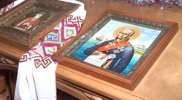 Семья Кекутия передала икону Феодора Ушакова в Преображенский храм