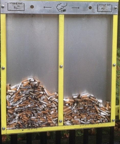 Что с помощью такой урны и бычков предлагают сделать курильщикам?