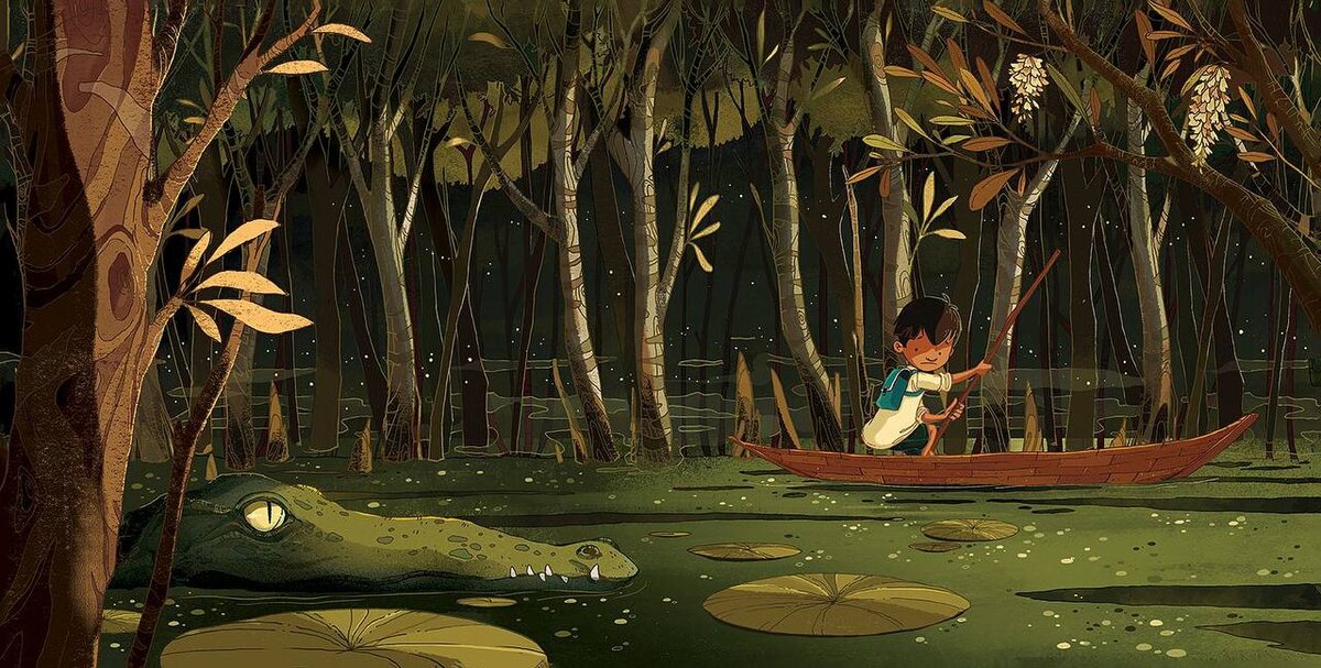 The First Journey by Phung Nguyen Quang and Huynh Kim Lien - книга, получившая в 2016 году Scholastic Picture Book Award. История рассказывает о мальчике по имени Ан, который отправляется в яркое, волнительное и опасное путешествие. Действие происходит во Вьетнаме, в дельте реки Меконг, где каждый год во время сезона дождей, дети вынуждены добираться в школу по разлившейся реке, преодолевая сложный путь. По моим ощущениям, читая эту книгу с детьми можно обсудить несколько важных тем: 1. Географические особенности Вьетнама и необычные условия жизни людей. Книга - путешествие, переносит нас в жаркие джунгли, где дикие животные и природные стихии влияют на людей. Где и как это происходит? Как люди живут в этих условиях? Почему? Как чувствовали бы себя дети, оказавшись там? Как повели бы себя? 2. Жизненные трудности в целом. Как мы с ними встречаемся, как переживаем и выходим из них. Книга - метафора, через сложный путь мальчика показывает читателям историю преодоления. В жизни каждого