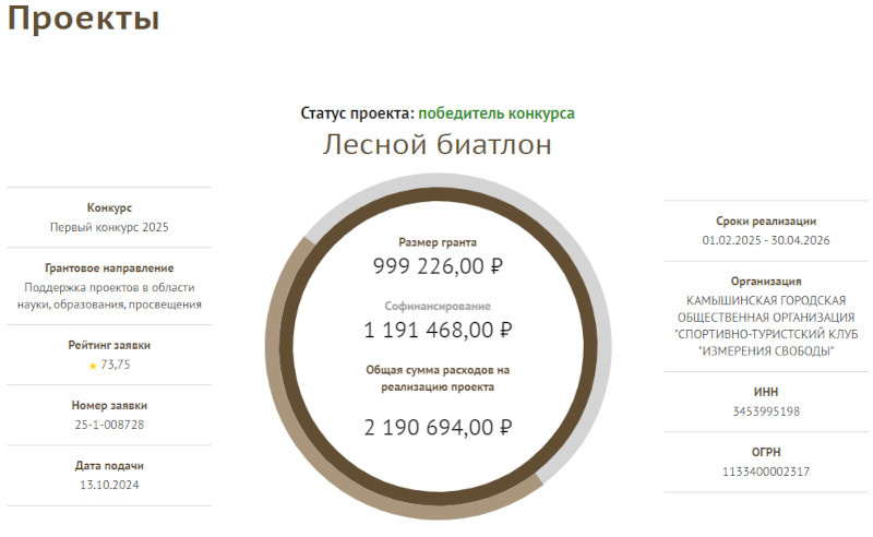 Поддержку получит спортивно-туристский клуб «Измерения свободы», работающий на базе детско-юношеского центра. Проект назван «Лесной биатлон» и ориентирован на школьников в возрасте от 8 лет и молодежь до 25 лет. Цель: создать условия для развития этого вида спорта в школах, где будут проведены занятия и мастер-классы по лесному биатлону. Намечены муниципальные соревнования, первенство города, фестиваль спортивного ориентирования. В качестве обоснования авторы указали: