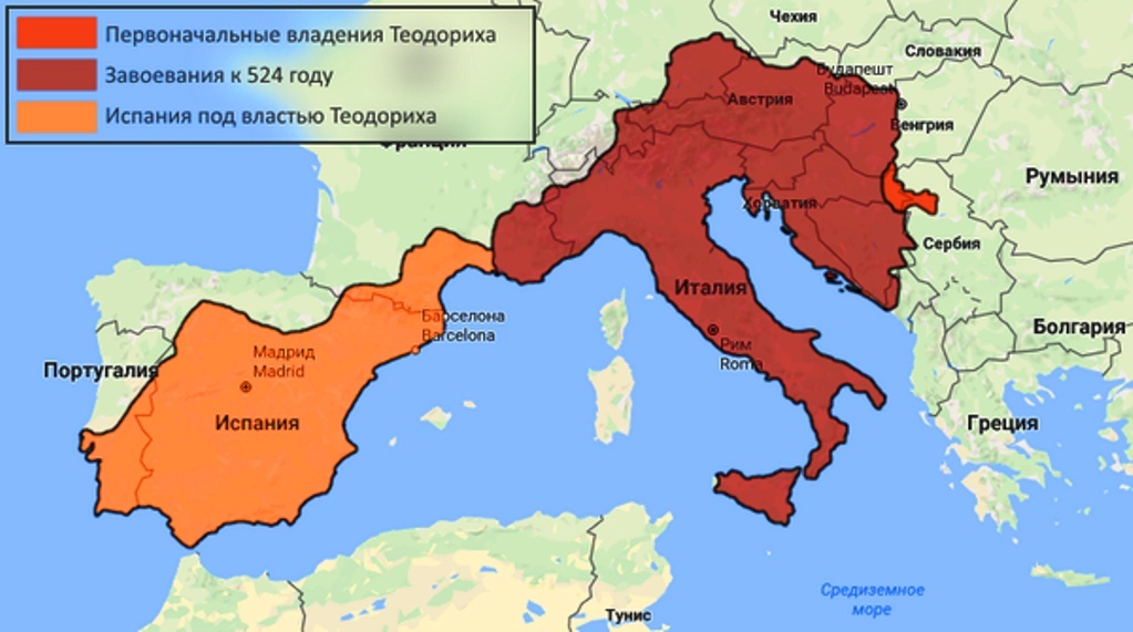Первое упоминание о разделении готского народа относится к 291 году, когда готы распались на две племенные группы тервингов – лесные (вестготы) и грейтунгов – степные (остготов). К концу V века вестготы занимали значительную часть современной Испании и Франции, а остготы расселились на территории завоеванной Италии. С 493 по 526 годы единоличным правителем королевства остготов с неприступной столицей в Равенне являлся Теодорих. Безраздельную власть над соплеменниками - вестготами Теодорих фактически удерживал с 511 года до своей смерти в 526 году на протяжении пятнадцати лет. При этом он утвердил внука Амалариха как официального короля, а себя как фактического правителя и опекуном малолетнего ребенка.