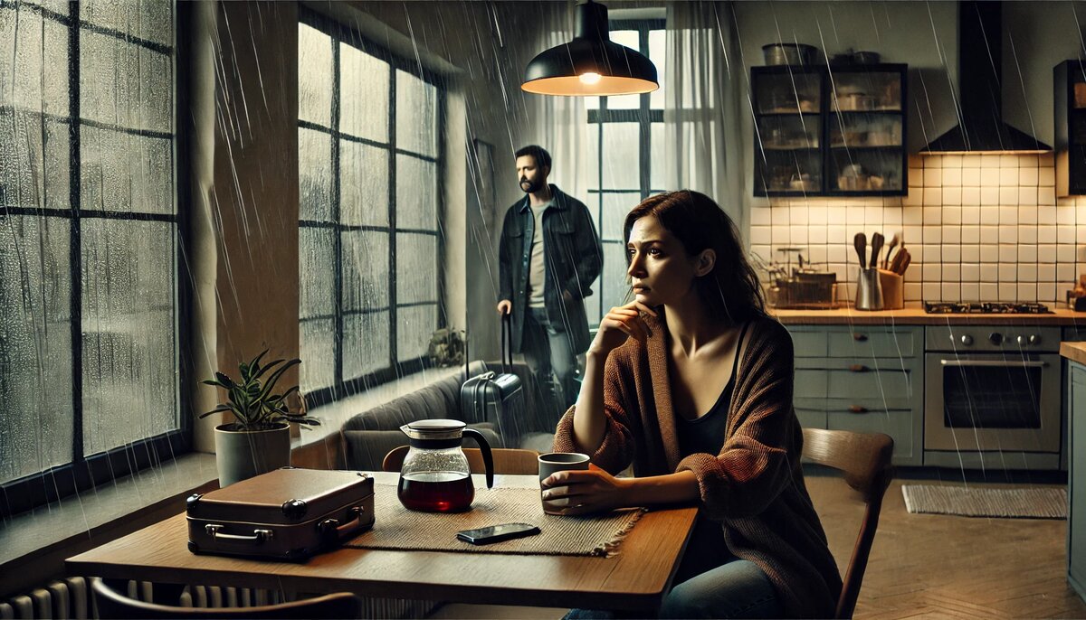 Анна сидела за кухонным столом, машинально перемешивая ложечкой остывающий чай. Утро было серым, как и её настроение. За окном шёл дождь, создавая на стекле сложные узоры. Она устало посмотрела на часы. Шум из детской комнаты напоминал, что через пятнадцать минут надо будет разбудить детей и начать обычный суетливый день. Но сегодня что-то было иначе. Анна не могла понять, что именно. Вчера вечером её муж Иван пришёл домой позже обычного. Он был молчалив, почти не разговаривал за ужином. А потом, сославшись на усталость, лёг спать раньше всех. Анна чувствовала тревогу, но решила не вдаваться в подробности. Когда Иван вошёл на кухню этим утром, она сразу заметила его странное поведение. Он избегал её взгляда, неловко переставлял тарелки и мрачно смотрел в окно. В руках он держал чашку кофе, но так и не отпил ни глотка. Анна почувствовала, что происходит что-то важное. — Ты что-то хотел мне сказать? — наконец нарушила она молчание. Иван поставил чашку на стол и глубоко вздохнул. Его лицо