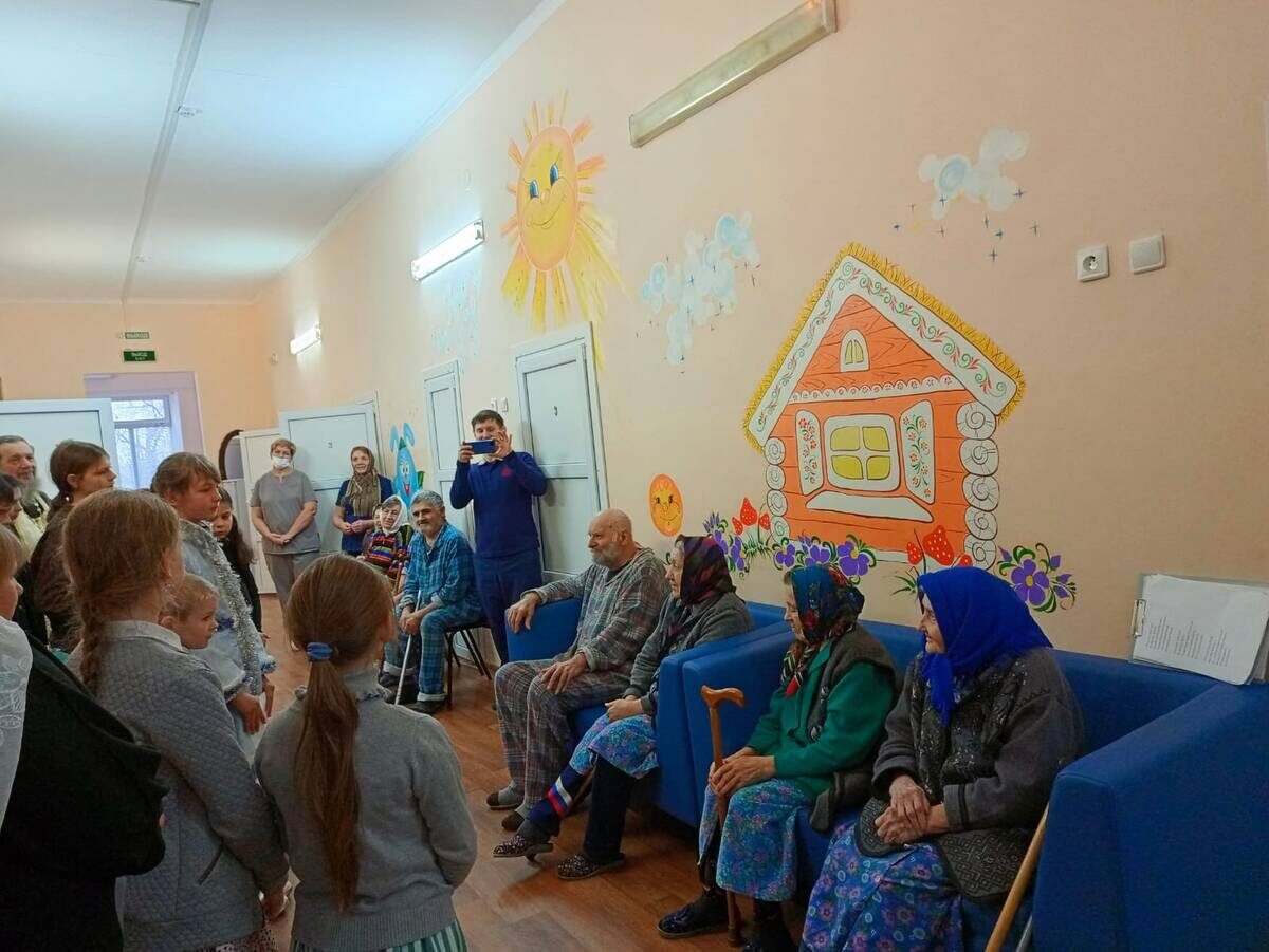 19 января 2025 года, в день Богоявления Господня, Семейная воскресная школа «Покров» храма Покрова Пресвятой Богородицы с. Хлевное во главе с настоятелем, благочинным Хлевенского ЦО протоиереем Владимиром Силантьевым, по окончании церковных богослужений посетила отделение медицинской паллиативной помощи взрослым Хлевенской районной больницы.