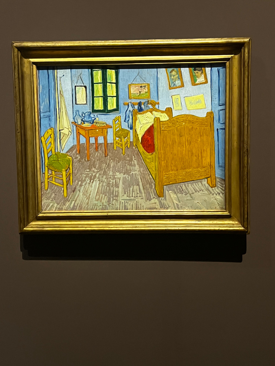 Часть 3 Сейчас в Лувре Абу- Даби проходит выставка Ван Гога. На ней представлены 3 картины: «Спальня в Арле» Мебель, представленная на картине, не случайна. Каждый предмет в спальне символизирует внутреннее состояние Ван Гога. Например, кровать олицетворяет его стремление к домашнему уюту и спокойствию, а стулья подчеркивают одиночество художника. Ван Гог был вдохновлен японскими гравюрами, которые также оказали влияние на композицию "Спальни в Арле". Элементы японского стиля, такие как простота и яркие контрастные цвета, прослеживаются в работе. Интересно, что в период создания "Спальни в Арле" Ван Гог страдал от психических расстройств. Эта картина во многом отражает его стремление к нормальности и спокойствию в его жизни. «Полдень: Отдых от работы» В картине можно увидеть фигуры, размещённые в определённых позах, что можно интерпретировать как символы сезонных изменений или жизненных циклов, однако Ван Гог никогда не комментировал На заднем плане можно заметить не только люде