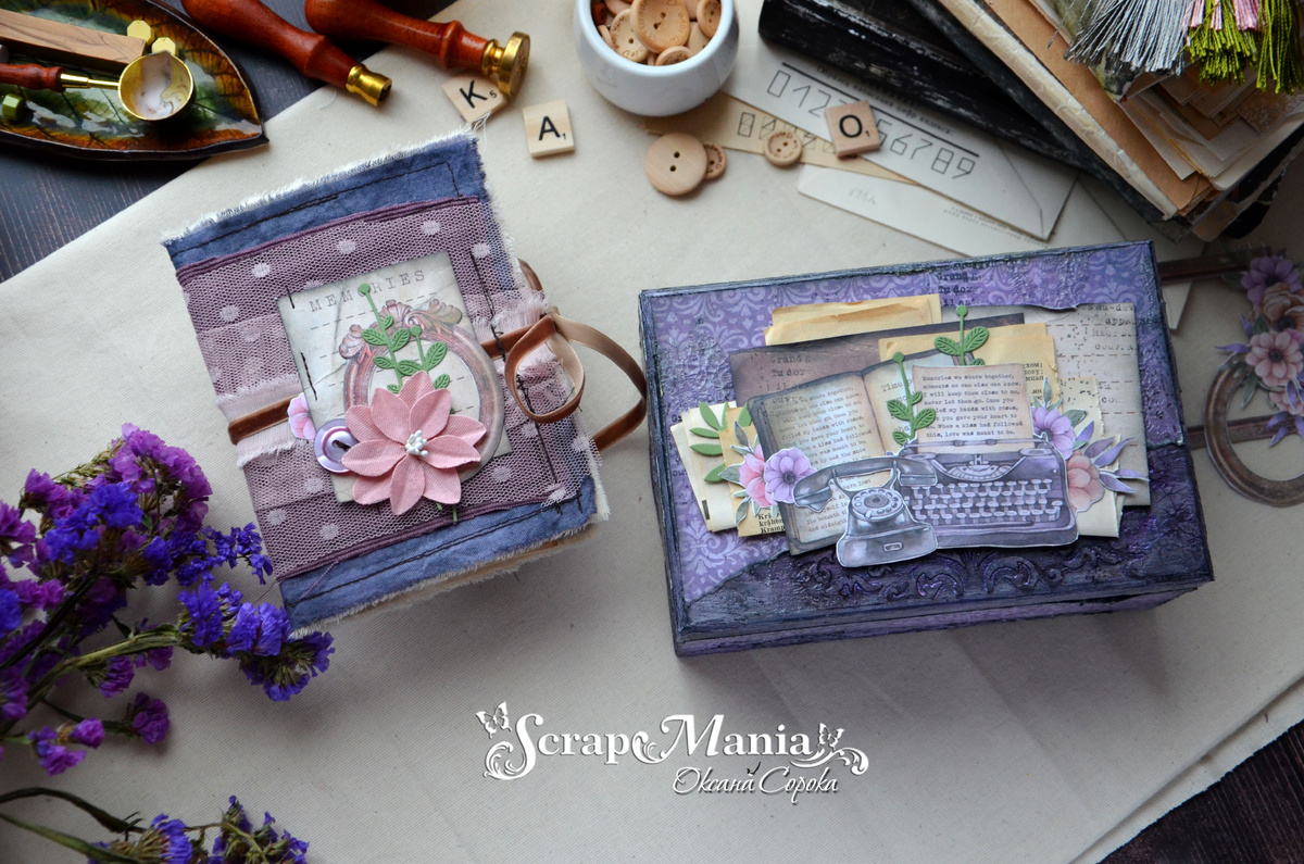 Доброго дня, друзья! На связи Оксана Сорока. Сегодня вдохновляемся коллекцией "Летние бабочки". Сначала у меня появилась шкатулка, потом я решила, что нельзя оставлять ее пустой и сделала для неё небольшой блокнот. Давно у меня кочевала с места на место деревянная заготовка шкатулки, а тут, видимо, настал ее час 😉. Не хотела просто заклеить красивой бумагой со всех сторон, поэтому вждала вдохновения и лежала. Фактуру дерева я все же перекрыла, но сделала поверхность шкатулки более рельефной при помощи трафарета "Волшебник. Дамаск" и текстурной пасты. Заранее продумала где будет бумага и фактурная поверхность, результат мне очень понравился. Крышку оформила композицией из скрапбумаги, книжных листов, вырубки и вырезных элементов. Думаю такое сочетание бумаги и красок вас тоже не оставит равнодушным. Шкатулка внутри обклеена скрапбумагой, которую я предварительно немного помяла, по краю затонировала черными чернилами. Получился эффект очень старой, пожившей шкатулки. На внутреннюю стор
