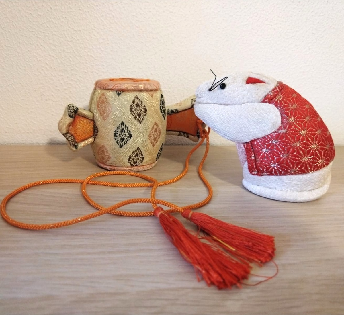 Новый экспонат в нашей коллекции – «Мышка с волшебной колотушкой». Композиция сделана в технике Кимекоми (в каркас с прорезанными канавками заправляется ткань и закрепляется клеем).