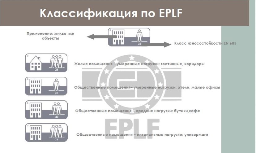 Классы ламината показывают область его применения. В каких помещениях этот технологически сложный продукт лучше всего использовать. Они различаются в основном по трем характеристикам: износостойкости (количество оборотов истирания поверхности), влагостойкости (определенный коэффециэнт разбухания плиты), ударной нагрузке. 31 –й подойдет больше в доме для спальни, где конечно проходимость будет низкой, воздействия воды на пол не будет и сопротивления ударам падающих предметов не требуется. Можно ли для спальни использовать 32-й и 33-й ? Конечно можно, но стоит ли брать с запасом прочности решать вам. В 33,34 –м поверхность сложнее поддается тиснению и создать продукт по ощущениям похожий на брашированное дерево не получится. 32-й подходит для всех помещений дома (спальня, коридор, кухня, гостиная).Самый распространенный класс ламината. Даже для ванной комнаты можно использовать особые виды водостойкого ламината 32 класса. 33 и 34-й можно использовать как во всем доме, так и в коммерчески