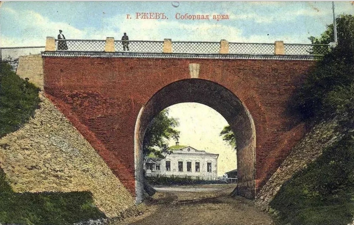 175 лет назад (в 1850 году) была построена арка-мост, соединяющая центр Ржева с Соборной горой при въезде на Центральную (ныне Советскую) площадь. Проект арки предложил и создал архитектор Прокофий Ивановский. А 40 лет назад (в 1985 году) уже несуществующую арку заменили переходным мостом к Обелиску, который был сооружён к 40-летию Победы. Соборная арка – единственный в Ржеве мост, украшавший наш город на протяжении 122 лет!