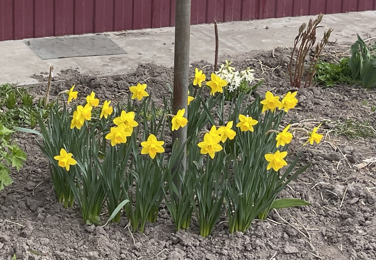 Идея такова: собрать декоративные растения моего сада и поставить в вазы. Каждой букве алфавита отдельная ваза. На буквы А, Б, В вазы уже заполнены мной. Читатели дополнили своими цветочками из садочка. В конце оставлю ссылку на подборку. Сегодня прогуляюсь по своему участку и нарву растения с первой буквой Г. Обычно располагаю растения в алфавитном порядке. Из правил бывают исключения. Такой момент сейчас. Начну с первоцвета. Гиацинт. Спасала это растение от погибили. В Пятерочке на кассе стояли луковицы гиацинтов на выгонке. Взяла три. Процвели дома. Поместила луковицы в горшок с грунтом, чтобы дотянуть до возможности посадить на постоянное место. Удалось мне это. Правда уже два года цветут как задохлики. Даже желания фотографировать не было. Жду их максимального вхождения в силу. Верю в них. Фотографировала нарциссы, гиацинты на заднем плане справа видны. Гайлардия. Это многолетнее однолетнее растение. Может показаться, что ерунду написала. Но нет. Во-первых, Гайлардия южное р