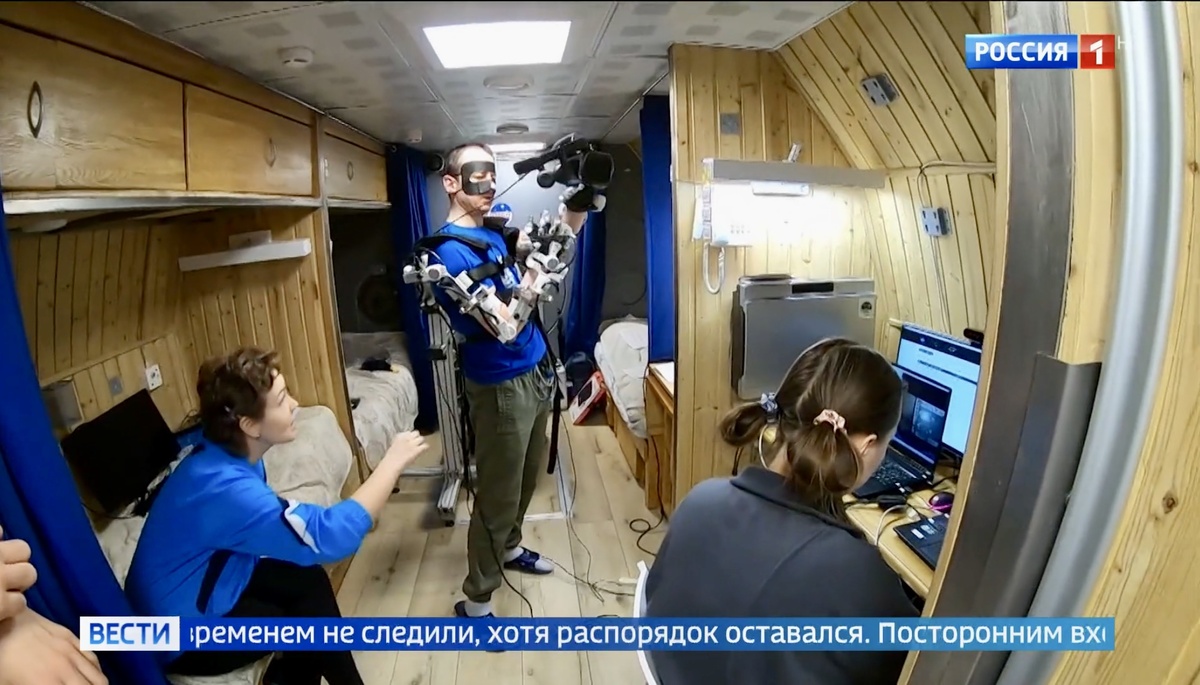 Пломба сорвана, рычаг до упора вверх. Из открытой двери модуля появляется экипаж. Не лунной походкой, а уверенным шагом первым выходит командир. Экипаж: 6 человек. Четыре женщины и двое мужчин. Все они работают в космической отрасли. Лунный десант, как называют себя сами участники, «вышел» на перспективном транспортном корабле на орбиту Земли, «перелетел» на окололунную и провел там почти год. За это время участники эксперимента успелИ несколько раз «высадиться» на Луну, отработали дистанционное управление луноходом и антропоморфными роботами. А еще вскопали в модуле огород. Овощи прямо с грядки. С одним из исследователей, Рустамом Зариповым, нас просят общаться на дистанции и в маске. Он все еще под наблюдением. Специальный прибор считывает данные работы его организма уже после «возвращения» на Землю. В модуле не было невесомости, но не было и солнца, воздуха, никаких привычных земных процессов. В этом и задача эксперимента - посмотреть, как на сложные условия отреагирует