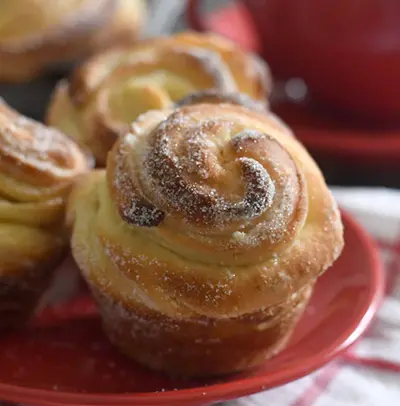 Краффин - гибрид слоёного круассана и маффина. В основе краффина - сдобное дрожжевое тесто. Он печется из хорошо расслаивающегося теста, смазанного размягченным маслом. Такая выпечка отлично украсит пасхальный стол. Обязательно попробуйте приготовить. Вот рецепт пасхального краффина. Для приготовления нам будут нужны вот эти продукты: 2 яйца 235 мл теплого молока 100 г сахара 150 г растопленного несоленого сливочного масла 1 апельсин с мелко натертой цедрой 1/4 чайной ложки соли 7,5 г активных сухих дрожжей 520 г муки пшеничной высшего сорта сахар для раскатки. Время приготовления: 5 ч 50 минут. Все нужные продукты собраны. Теперь сам пошаговый рецепт краффина в домашних условиях. 1. В большую миску добавьте яйца, молоко, сахар и 260 г растопленного сливочного масла (остальное оставьте на потом). Хорошо взбейте. 2. Добавьте апельсиновую цедру, соль, муку и дрожжи и хорошо перемешайте ложкой или руками. 3. Месите в течение нескольких минут, сформируйте шар. Положите тесто в большую миск