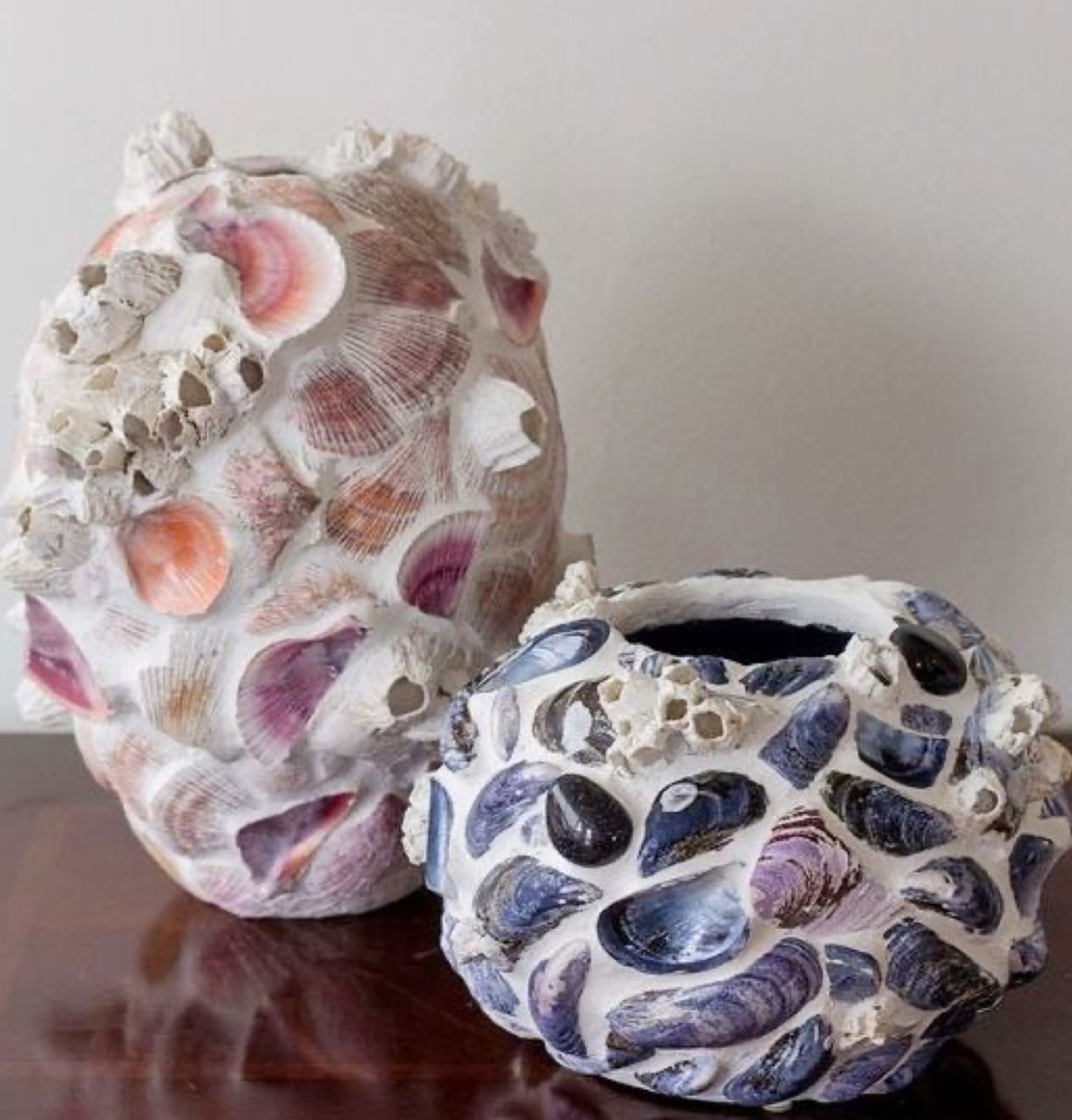 Чтобы кашпо с ракушками смотрелось дорого и соответствовало моде стоит придерживаться монотонности. Например, по цвету ракушек или по виду ракушек. Закрепить ракушки на кашпо можно просто на горячий клей. Но если использовать шпаклевку или глину и углубить ракушки, такой вариант будет притягивать внимание. Еще совет: не стоит перегружать горшок количеством элементов, потому что много не означает дорого-красиво. Например, ракушки можно расположить группами, а не равномерно по всему кашпо: