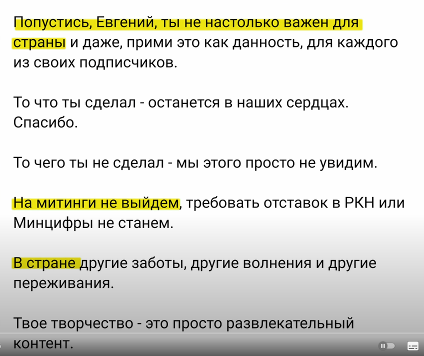 Причём автор поста явно признаёт, что VK-то не идеален. И когда в посте пишут о том, что Баженов рассматривает бан YouTube, как войну против него лично - это прям в точку.