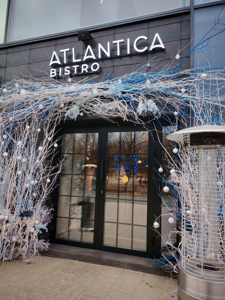 Очереди около входа и полная посадка — это всё самый популярный ресторан Москвы Atlantica Bistro. Об этом ресторане не снял рилс только ленивый блогер. Фишками заведения являются довольно демократичные цены и вкусные блюда из морепродуктов. Находится ресторан на метро "Цветной бульвар", недалеко от Цирка на Цветном. Расположение очень удачное. Мне повезло: я пришла в час дня, и очередей не было. Но всё равно все столики были заняты, и мне предложили сесть за бар. Я согласилась. По сути бар похож на маленький столик с украшением посередине. Зал украшает ёлка, а на люстрах висят сети. Мило. Цены в меню очень доступные. Я опоздала на завтраки, поэтому это основное меню. Также есть обширная алкогольная карта. И для тех, кто воспринимает всё визуально, есть меню по QR-коду. Мне меню с картинками кажется привлекательнее. Сам по себе ресторан небольшой, отсюда и очереди. Персонал молодой и очень приятный. Кухня и бар в ресторане — открытого типа, но сильно едой не пахнет. Это явный плю