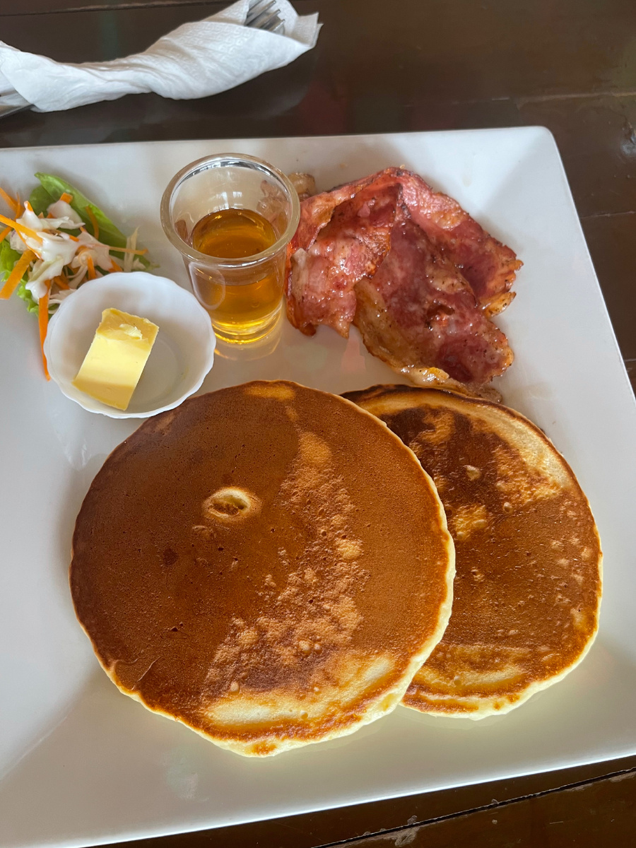 Вчера, около часов 11 вечера, зарядил ливень. Лил он до поздней ночи. Долго не могла уснуть,да и всю ночь плохо спала. Проснулась в 7 утра без будильника и часов до 9 лежала, пока мои спали. Кстати, утром вышла, и молоко которое я оставляла в «мисочке», было на дне. Сходили на завтрак, пасмурно было все утро, прохладненько даже, особенно по сравнению с днями, когда уже вовсю грело солнце в 10 утра. И была такая ужасная головная боль на виски, на глаза, на нос. Вернулись с завтрака я чутка полежала, прям плохо было. Купаться не хотела и периодически дождик моросил. Кстати, теперь детям берем на завтрак панкейки. Можно выбрать с сосисками (мелкие и невкусные), беконом (беру чаще с беконом муж любит) и с фруктами (приносят или манго или банан). Берем 2 порции - дочка с фруктами, сыну с беконом, который ест муж)Панкейки обалденные, самые лучшие, которые я когда-либо пробовала. Дети в восторге. Муж ест американский завтрак с беконом каждое утро, а я каждое утро беру омлет с сыром и помидор