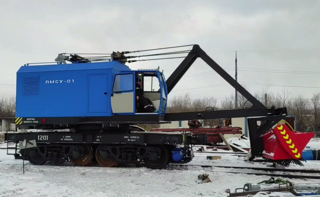 Четырехосная машина ПМСУ-01 создана на базе выпускаемого заводом ж/д крана ЭДК-25. Стрелу крана заменили снегоуборочной щеткой. Фото: «Челябкрансервис». Как сообщает издание Rollingstock со ссылкой на «Челябкрансервис», ПМСУ-01 может очищать снежный покров высотой 0,3 м и шириной 3 м при рабочей скорости в 6,4 км/ч. Помимо возможности оборота поворотной рамы на 360°, щетка может поворачиваться относительно вертикальной оси на 180°. Это позволяет использовать машину для очистки пути, на котором она находится, и параллельных путей. Силовая установка в ПМСУ-01 включает дизель-агрегат на базе двигателя ЯМЗ-238 и генератора мощностью 150 кВт. Ее перемещение осуществляется своим ходом в обоих направлениях при помощи двух ходовых редукторов. Назначенный срок службы – 25 лет. Фото: «Челябкрансервис». Как рассказал Rollingstock владелец завода Владимир Кантор, машина сделана под заказ металлургического предприятия и уже поставлена ему. Сертификация для работы на путях общего пользования пока не