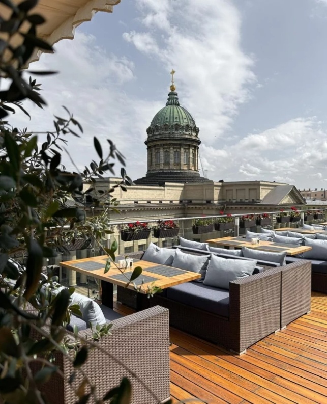 Санкт-Петербург — город, который славится не только своими историческими памятниками и живописными каналами, но и уникальными гастрономическими традициями. Среди них особое место занимают рестораны на крыше, которые открывают перед гостями потрясающие виды на архитектурные красоты города. Здесь еда становится не только удовольствием, но и частью невероятного зрелища, где сочетаются изысканная кухня и живописные горизонты. Ресторан «Terrassa» Адрес: Казанская ул., д. 3 (станция метро «Невский проспект» «Гостиный двор», «Адмиралтейская»). Кухня: европейская, смешанная, японская, русская, устрицы Средний чек: 5000 рублей / чел. Пожалуй, один из самых популярных ресторанов на крыше. Этот уютный уголок на Невском проспекте предлагает захватывающие и панорамные виды на самый центральный район Петербурга и Казанский собор. Здесь вы можете насладиться как традиционными русскими блюдами, так и интернациональной кухней. Особое внимание стоит уделить настоящему петербургскому деликатесу — креветк