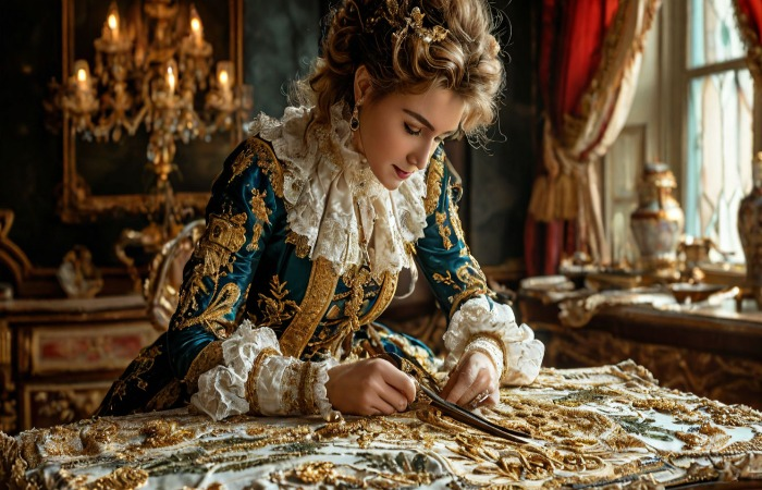 Аристократки не нуждались в работе, но было принято, чтобы они умели рукодельничать. С детства девочек учили шить и вышивать, но взрослые редко этим занимались. В качестве исключения они вышивали собственноручно платочек или вензеля на одежде, если хотели привлечь чье-то внимание. Странным и скорее бесполезным увлечением считалось завязывание узелков на ленте.