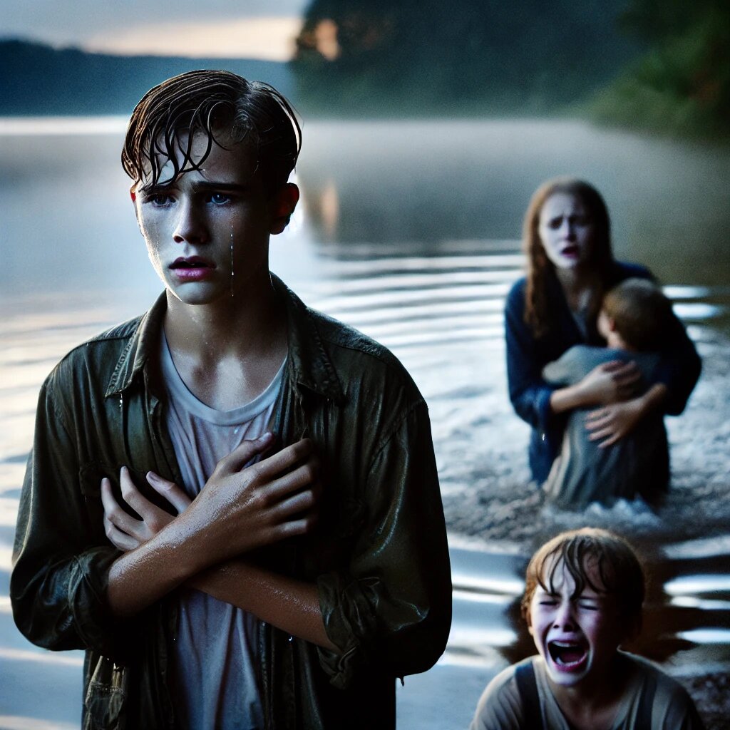 На берегу никого не было. Только лёгкий ветерок шевелил листья на деревьях, словно насмехаясь над происходящим. Младшие начали плакать, но Маша прижала их к себе, не сводя глаз с воды. Ромка захлёбывался, его движения становились всё более хаотичными.