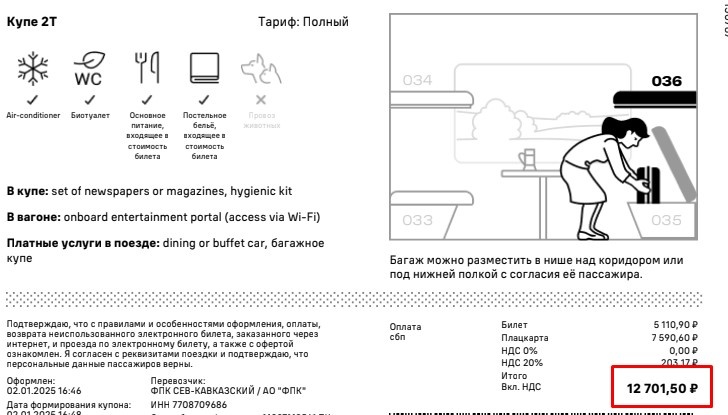 А вы видели цены на ж/д билеты? Я вот обычно не заглядываю в стоимость, ибо мне их покупает муж после одной истории... А дело было так. Во времена когда в Краснодаре ещё работал аэропорт я очень ждала мужа самолётом из Москвы. А кто ж любит долгие вот эти разлуки? Я и говорю ему, мол куплю сама. САМА! Зашла в яндекс, забила маршрут Москва-Краснодар, открыла ссылку на покупку билетов и выкупила удобный рейс. Скинула маршрутную квитанцию на почту и сижу жду себе. Вот только через пару часов он звонит мне и сообщает, что в самолёт он попасть ну никак не может, так как он вылетает не из Москвы, а из Краснодара. Наоборот я купила, дурёха. Именно поэтому в цены я особо и вглядывалась, а тут ёшкин-матрёшкин посмотрела, и за 19 часов в пути на верхней полке в купе запросили аж 12 тыщ 701 рубль! Правда с завтраком в виде безвкусного омлета или водянистых блинов. Зато кровать стелить не надо. И поезд одноэтажный категории премиум. Во всём же нужно искать что-то хорошее. С собой у меня были толь