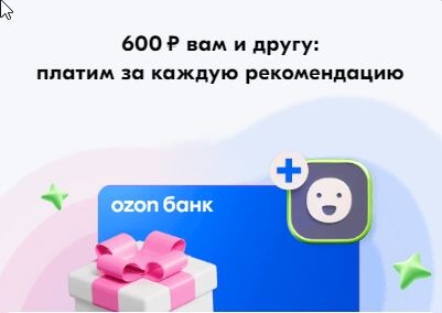 Привет, друзья! Сегодня я хочу рассказать вам об уникальной возможности, которую предоставляет Ozon. Если вы порекомендуете свою карту другу и он совершит покупку вне Ozon, то вы оба получите приятный бонус — 600 рублей на ваш счёт. Как это работает? Всё очень просто. Когда ваш друг совершает покупку вне Ozon, вы получаете 600 рублей на свой счёт. Эти деньги можно потратить на покупки в любом магазине Ozon. Чтобы получить бонус, выполните несколько простых шагов: 1. Зарегистрируйтесь на Ozon.ru и создайте свою карту. 2. Поделитесь ссылкой на свою карту с друзьями и знакомыми. 3. Попросите их совершить покупку вне Ozon. 4. Получите свои 600 рублей на счёт после подтверждения покупки. Обратите внимание, что бонусы начисляются только один раз за одну покупку. Не упустите возможность заработать дополнительные деньги и порадовать себя приятными покупками! Рекомендуйте Ozon Карту друзьям и получайте бонусы вместе с ними.