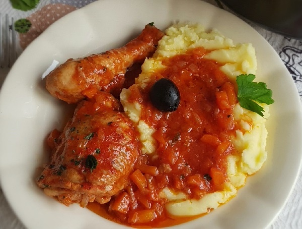В итоге у меня получилась курица по-охотничьи с небольшими изменениями — отличное недорогое блюдо, которое я подала с картофельным пюре. Поверьте, несмотря на простоту продуктов, получилось очень вкусно!