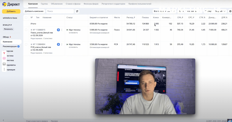 В новостном портале «Известия» рассказали, что в 2024 году россияне стали посещать загородные туры и отели в почти в 2 раза чаще, чем в 2023 году. Повышенный спрос на турбазы усилил конкуренцию — а значит продвижение этого бизнеса, в том числе через интернет, стало сложнее. По этой причине к нам и обратился владелец Базы отдыха «Белый лев». У компании снизился поток клиентов, практически не работала реклама, а сайт почти не приводил лидов. Но даже в этих условиях нам удалось ощутимо продвинуть бизнес клиента. Вот что мы для этого сделали. Для продвижения сайта заказчика мы использовали Яндекс Директ и РСЯ. Прежде всего мы провели аудит конкурентов и изучили, какие ключевые слова, объявления и визуалы они используют. Оказалось, что большинство компаний акцентировались на стандартных предложениях, вроде «отдых на природе» или «доступные цены» — но почти никто не применял такие преимущества инфраструктуры, как близость к транспортным узлам или уникальные услуги, вроде рыбалки и бассейна.