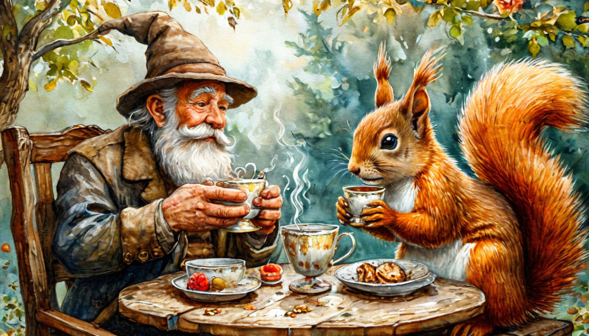 Старый Марфол вылез из пенька, потянулся, сладко зевнул и посмотрел по сторонам. Марфол был лесовичком и жил в лесу с незапамятных времен. Лес был тих и спокоен. По утреннему ласковые лучи встающего Солнца пробивались сквозь кроны деревьев, создавая на земле причудливые узоры света и тени. В бездонной синеве неба не было ни облачка. Высоко-высоко, еле видные с земли летали ласточки. В воздухе витал аромат свежей зелени и цветов. Марфол вздохнул полной грудью и отправился на прогулку. Он любил бродить по лесу, смотреть, что изменилось в лесу и встречать старых друзей. Он свернул в заросли малинника и стал есть сочные спелые ягоды. - здравствуй, дядя Миша – сказал Марфол, увидев давнего своего друга, огромного косматого медведя. Медведь тоже лакомился ягодами и грелся на Солнышке.
