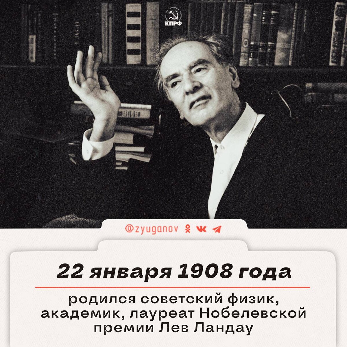 22 января 1908 г. родился выдающийся советский физик, академик, лауреат Нобелевской премии Лев Ландау