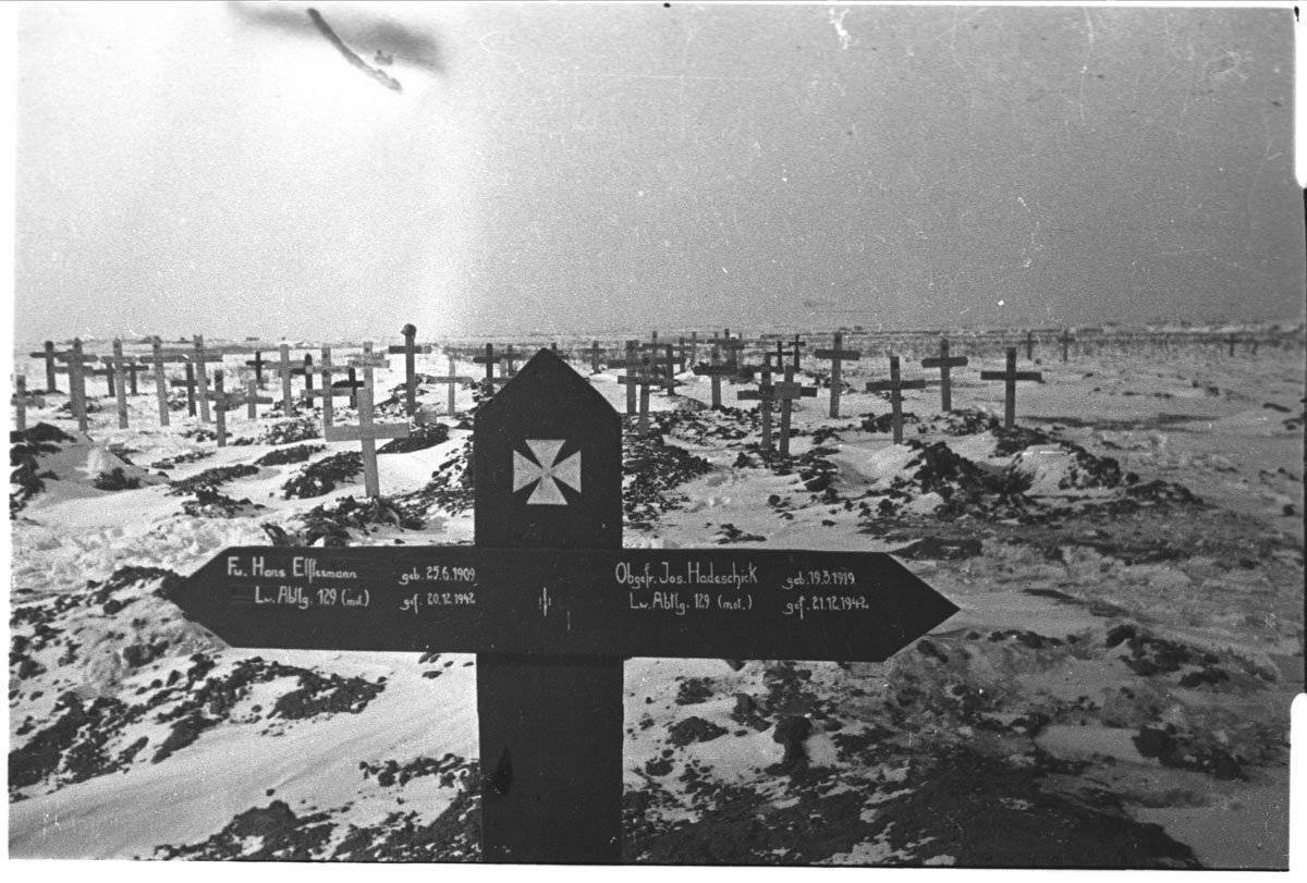 Сейчас сочельник, и когда я думаю о доме, мое сердце разрывается. Как здесь все безрадостно и безнадежно. Уже 4 дня я не ел хлеба и жив только половником обеденного супа. Утром и вечером глоток кофе и каждые 2 дня по 100 грамм тушенки или немного сырной пасты из тюбика — голод, голод. Голод и еще вши и грязь. День и ночь воздушные налеты и артиллерийский обстрел почти не смолкают. Если в ближайшее время не случится чуда, я здесь погибну. Плохо, что я знаю, что где-то в пути ваша 2-килограммовая посылка с пирогами и мармеладом..."
