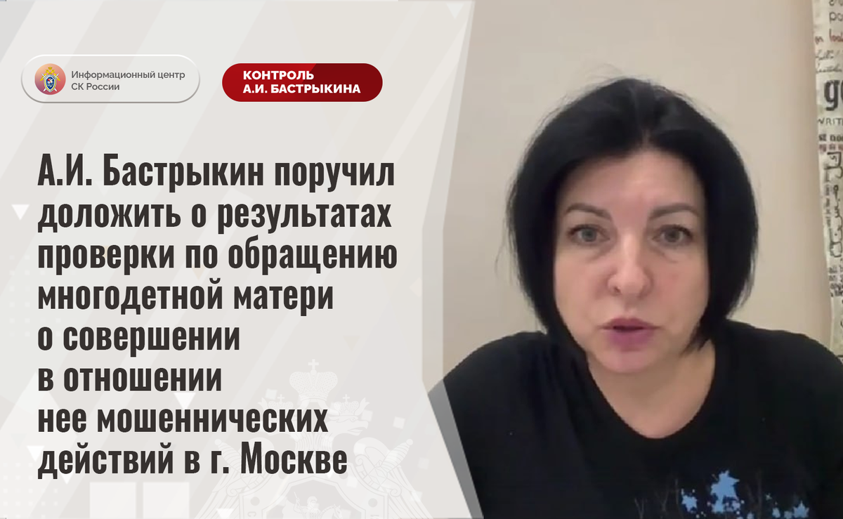 А.И. Бастрыкин поручил доложить о результатах проверки по обращению многодетной матери о совершении в отношении нее мошеннических действий