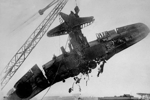 Когда перехватчики увидели самолет , их сердца замерли . Он был полностью охвачен огнем ,а пилот ,изрешеченный пулями, был точно мертв. После этого самолет сразу спикировал на землю и разбился. К месту крушения тут же были отправлены спасательные команды , но пилота они обнаружить не смогли. Единственное ,что удалось обнаружить , это бортовой дневник. В дневнике сообщалось ,что самолет находился в 1300 милях в Тихом океане на острове Минданао.